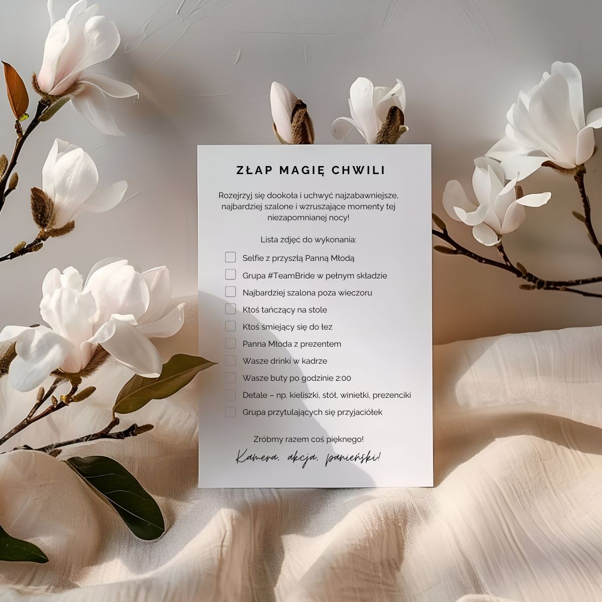 - Rozdaj takie same karty wszystkim uczestniczkom lub przygotuj różne zestawy zadań – każdej inny „foto challenge”!