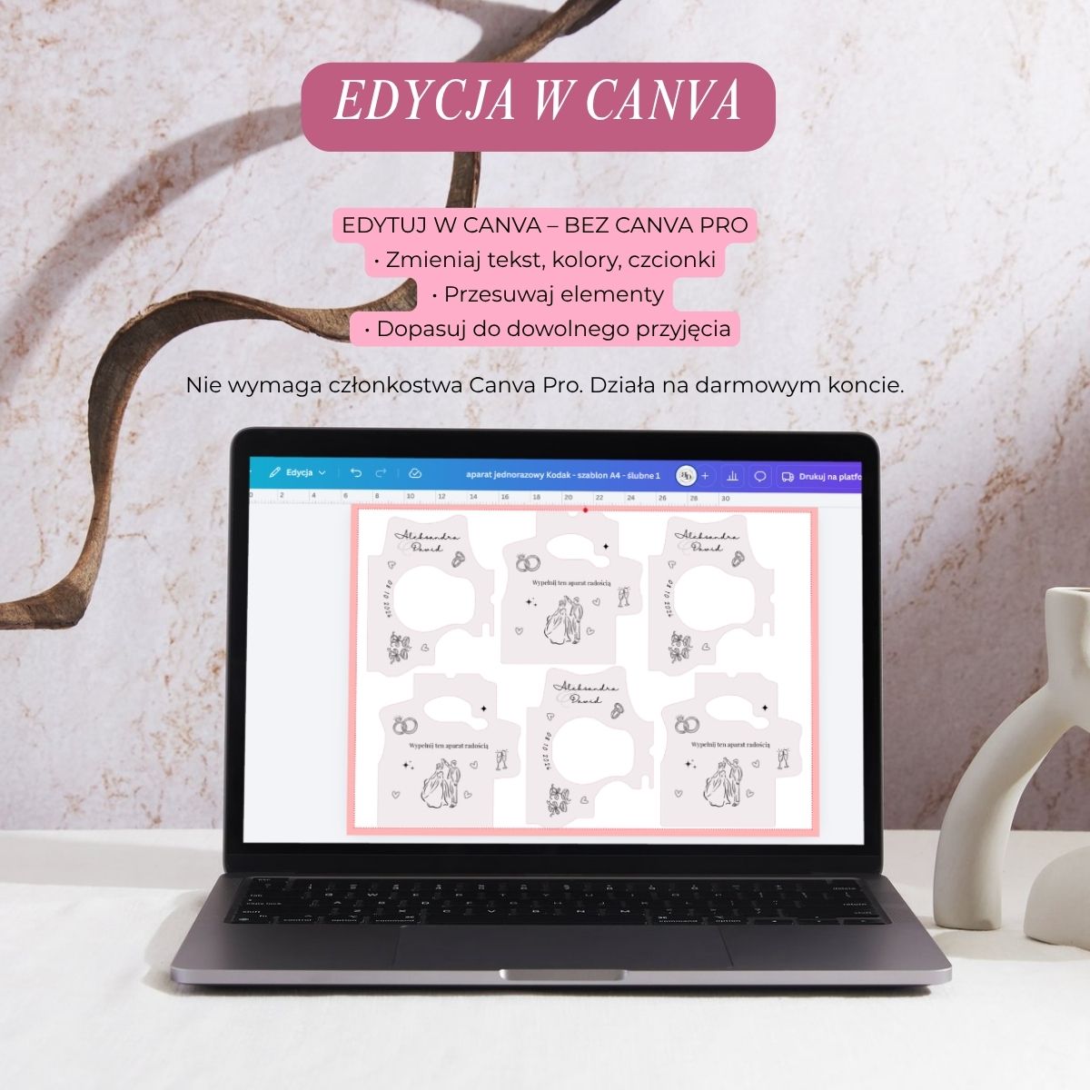 – link do pobrania PDF z instrukcją i szablonem Canva dostępny do 100 dni od zakupu