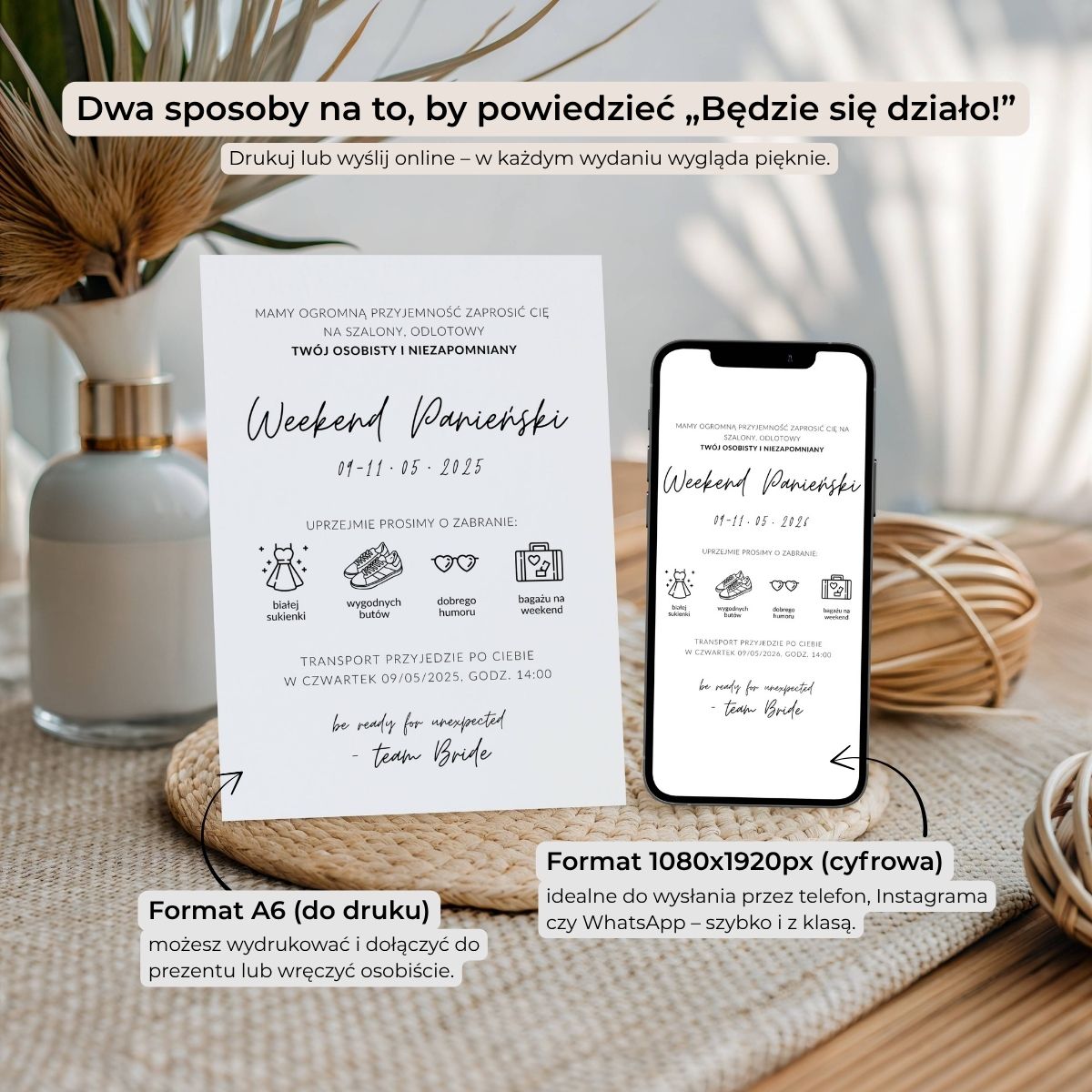 Dwa formaty w zestawie – druk A6 + cyfrowy 1080×1920 px (idealny na telefon).