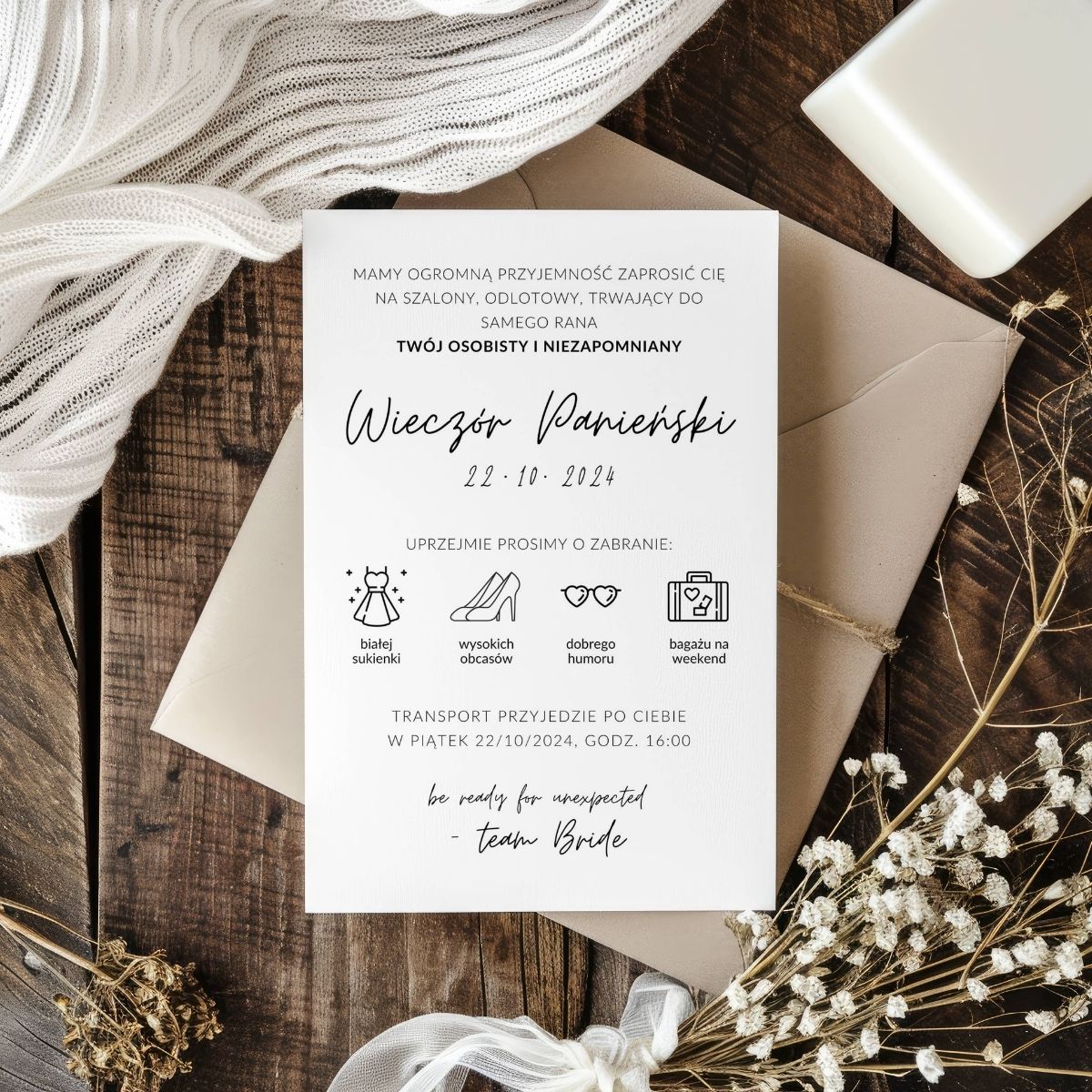 ✨ Zaskocz przyszłą Pannę Młodą stylowym zaproszeniem, które zapowiada dobrą zabawę już od pierwszego spojrzenia!